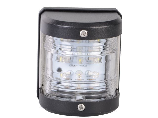 Zwarte LED navigatie lamp met een sterk polycarbonaat huis voorzien van RVS afdekplaat.